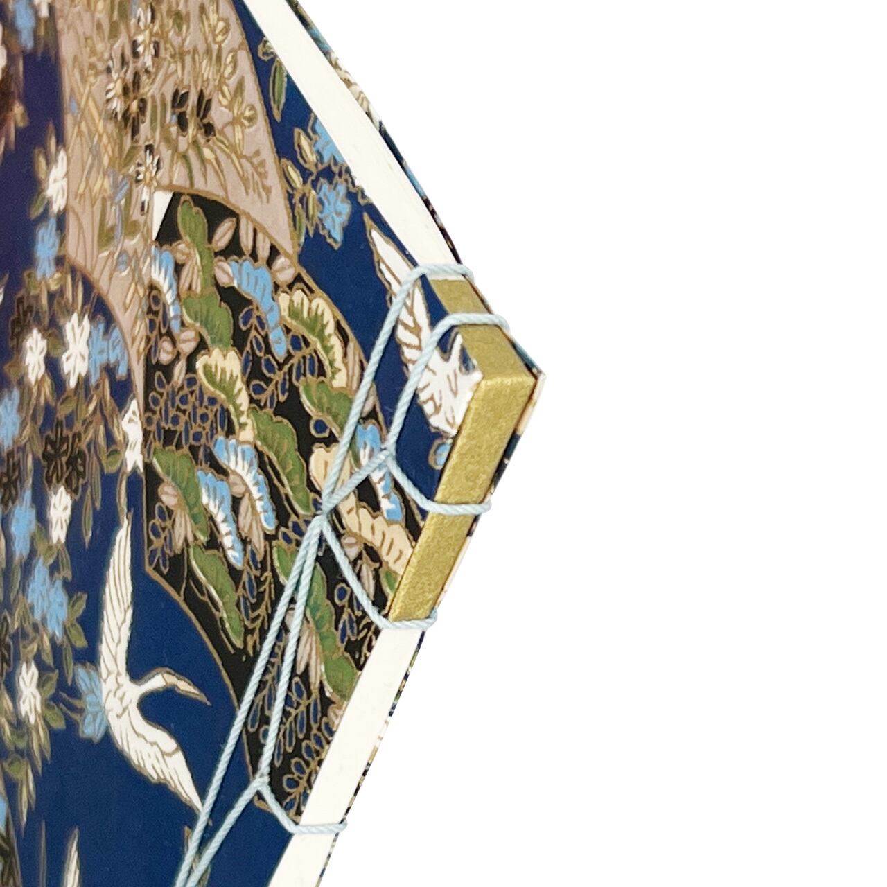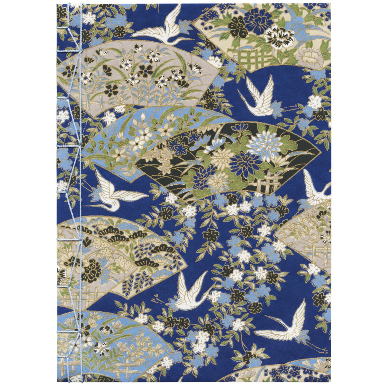 扇と鶴 —Navy blue background with fans, cranes and flowers in Japanese bound notebook | Japanese Bindery【和綴じ工房】